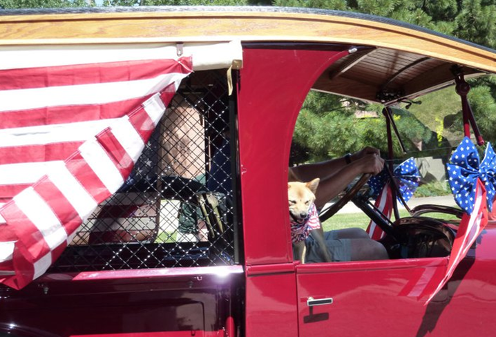 わんこも、星条旗にくるまっています